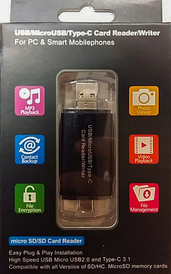 - OTG – SD & TF – USB – Micro USB – Type-C